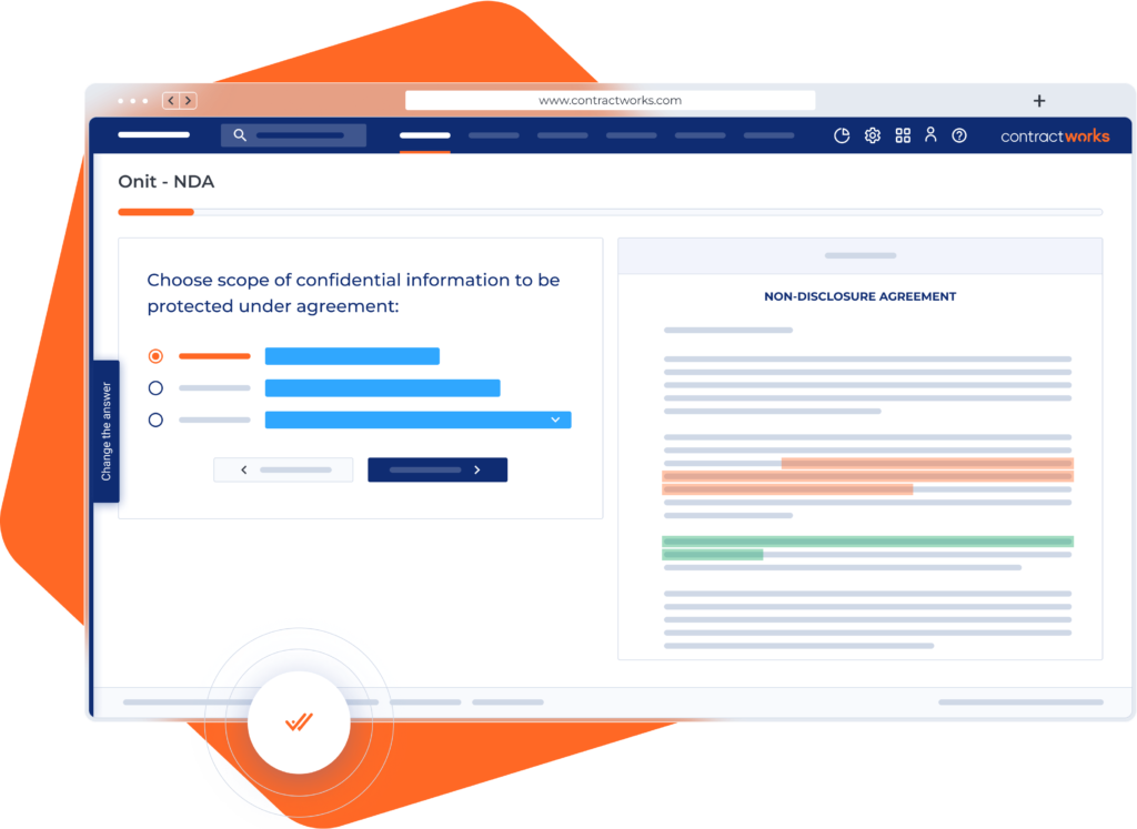 СontractWorks helps you stay efficient by cutting the time needed to prepare and draft contracts. Create documents by simply answering preconfigured questions, re-use data across agreements, and delegate drafting to business teams without worry.