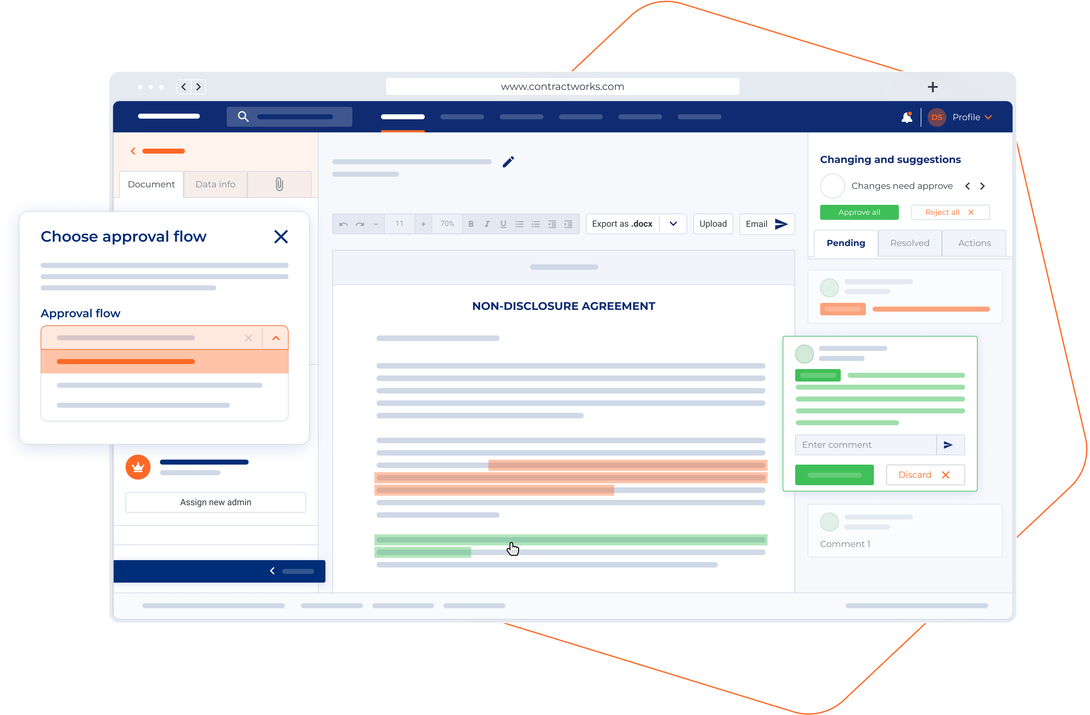 ContractWorks saves you from lengthy negotiation cycles and endless emails. Negotiate contracts in a shared environment with an audit trail of all changes. Easily push contracts forward with automated workflows that notify the right party to take action at the right time.
